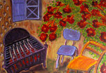 Hiermee is het allemaal begonnen: in Frankrijk onder een vijgeboom zag ik het hele tafereel voor me; ik heb het geschilderd en was zo verbaasd over het resultaat, dat dat een vast thema is geworden: gedekte tafels. Dit schilderij is uiteindelijk als etiket verschenen op de Paradis-wijn van Ilja Gort.