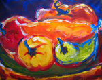 2005Glimmende paprika's in alle kleuren; eerst schilderen en daarna in de pan ermee.