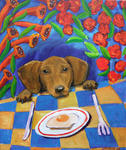 2008In opdracht de liefdesteckel Jonas uit Groningen geschilderd, de enige hond die van spiegeleieren houdt.