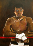 2012Na het bezoeken van een tentoonstelling met schilderijen van Jan Sluijters, besloten wij als Schilderploeg tot de volgende opdracht: maak een schilderij dat geïnspireerd is op Jan Sluijter, qua onderwerp of techniek. Ik liet me inspireren door zijn boksers. Dit is een portret van Mohammed Ali.